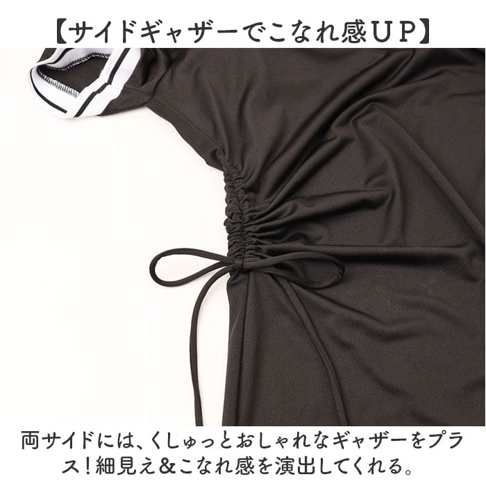 ・両サイドには、くしゅっとおしゃれなギャザーをプラス!細見え&こなれ感を演出してくれる。
