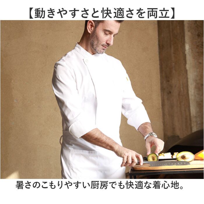 ・暑さのこもりやすい厨房でも快適な着心地。