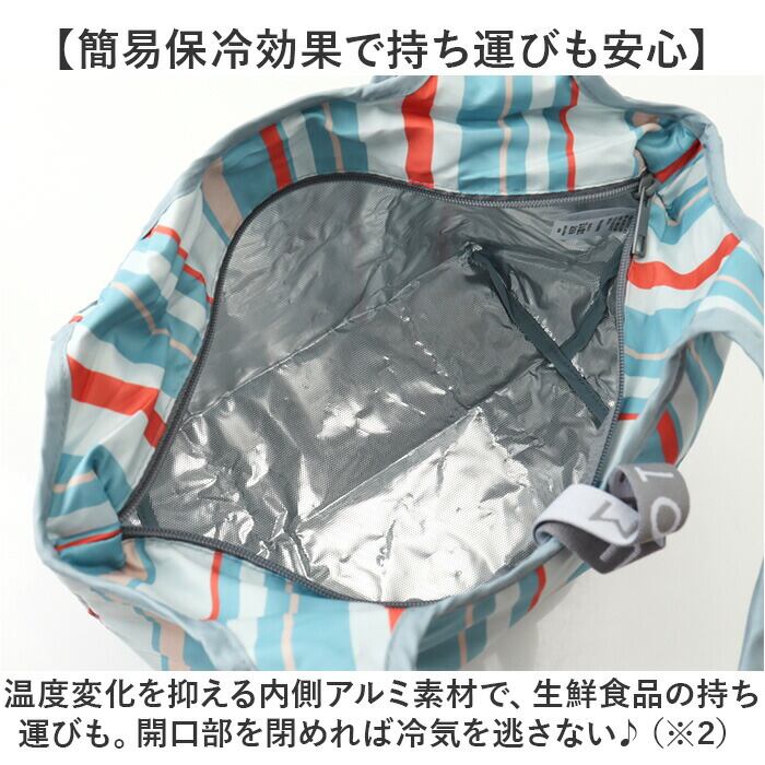 ・温度変化を抑える内側アルミ素材で、生鮮食品の持ち運びも。開口部を閉めれば冷気を逃さない♪