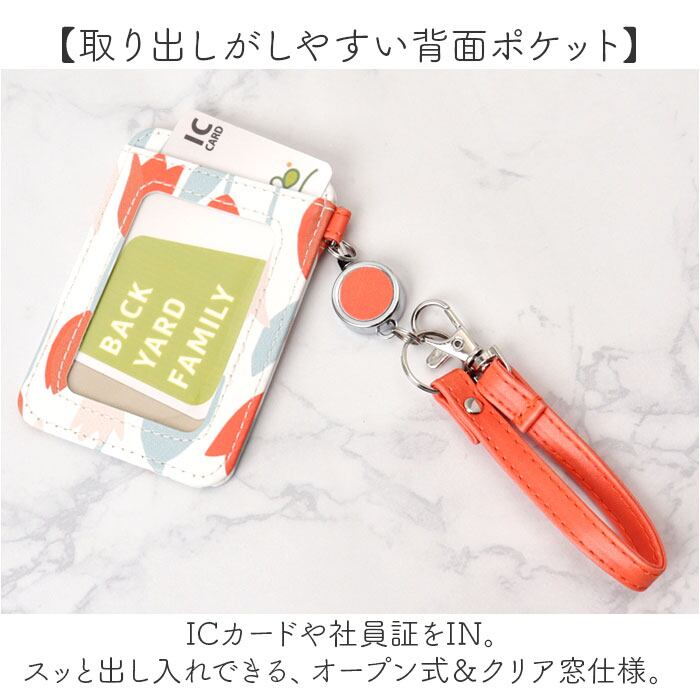 ・ICカードや社員証をIN。スッと出し入れできる、オープン式&クリア窓仕様。