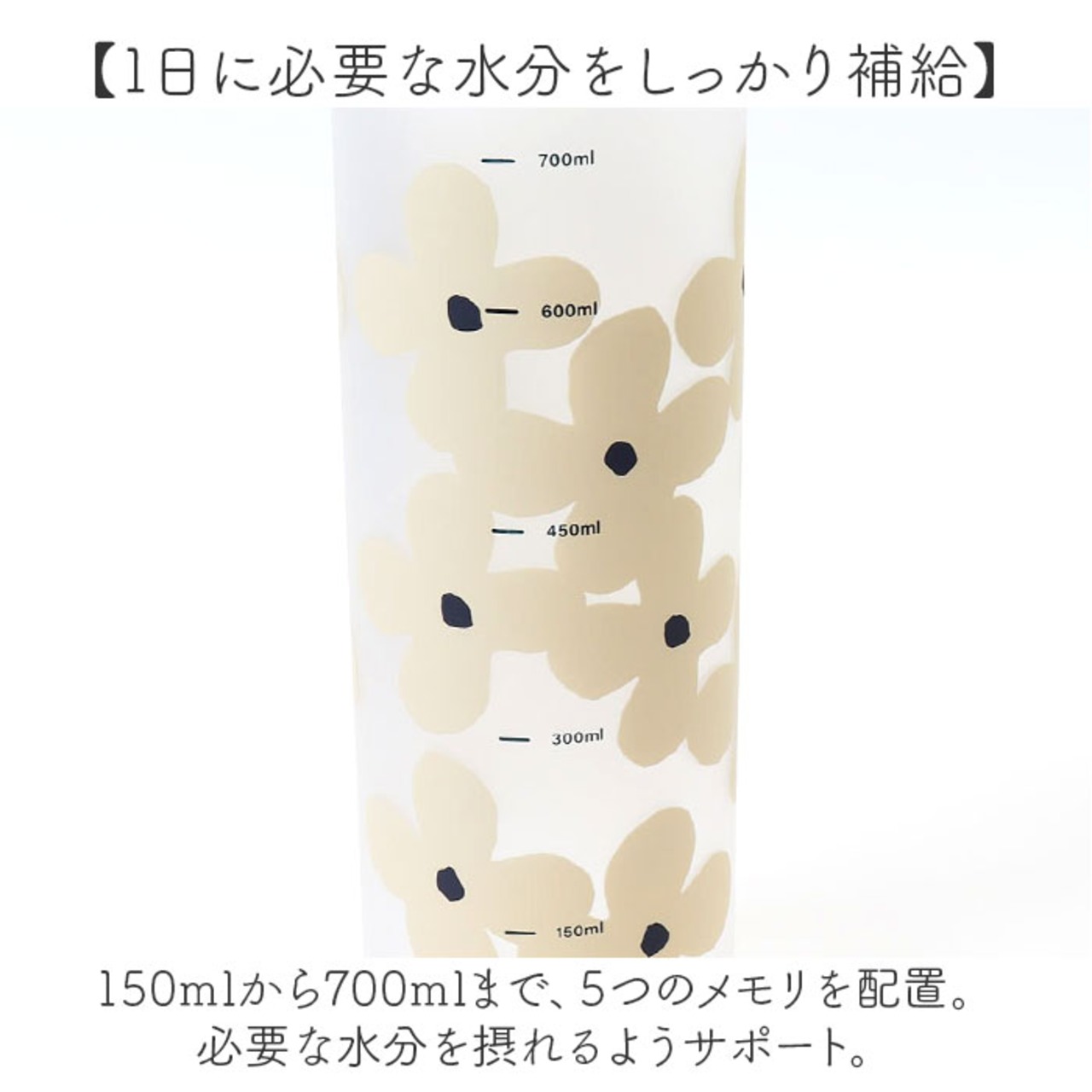 ・150mlから700mlまで、5つのメモリを配置。必要な水分を摂れるようサポート。