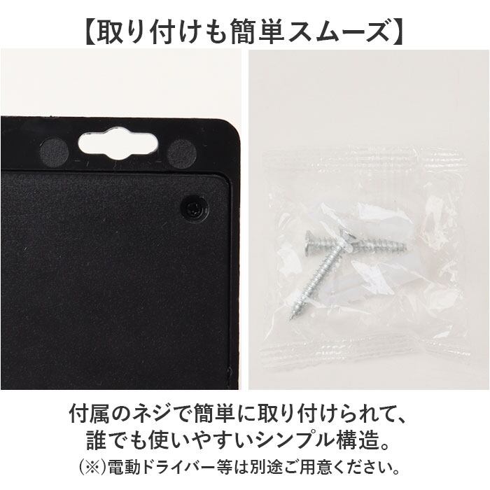 ・付属のネジで簡単に取り付けられて、誰でも使いやすいシンプル構造。