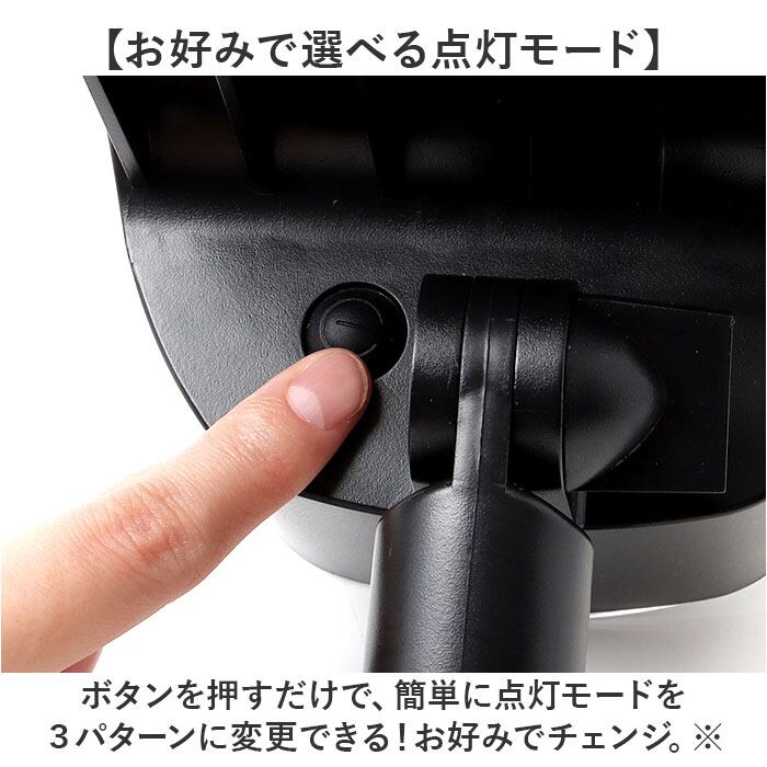 ・ボタンを押すだけで、簡単に点灯モードを3パターンに変更できる!お好みでチェンジ。
