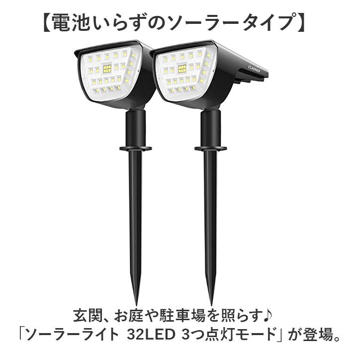 ・玄関、お庭や駐車場を照らす♪「ソーラーライト 32LED 3つ点灯モード」が登場。