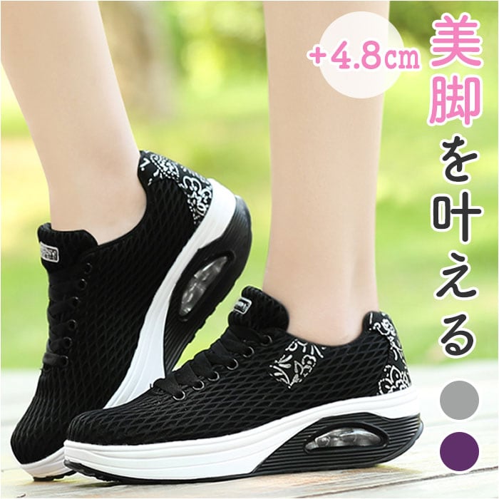 ・約5cmの厚底でさりげない脚長効果!シューズを履くだけでお手軽にスタイルアップできるのが嬉しいポイント。