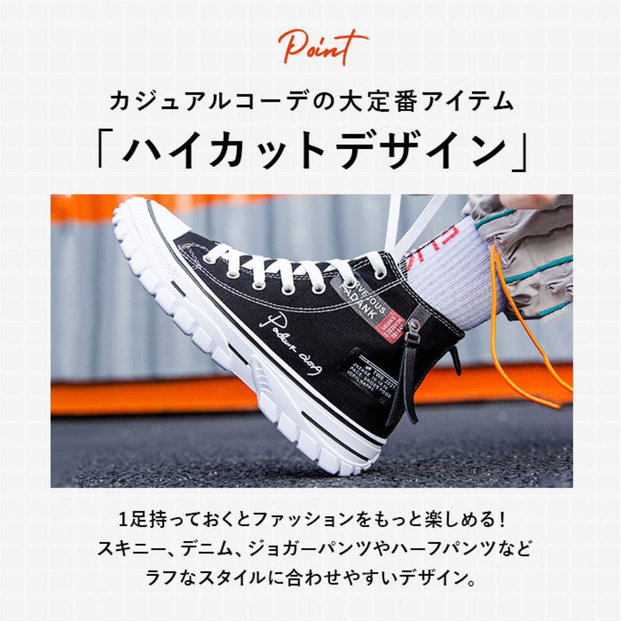 ・定番のハイカットスニーカーに、こなれ感をプラスしてデザイン性をUP。サイドの英字デザインとチャームで、ひと味違う仕上がりに☆