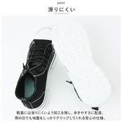・靴裏には滑りにくいよう加工を施し、歩きやすさに配慮。雨の日でも地面をしっかりグリップしてくれる安心の仕様。