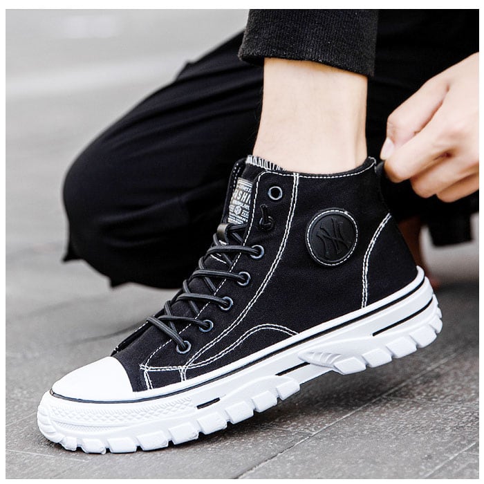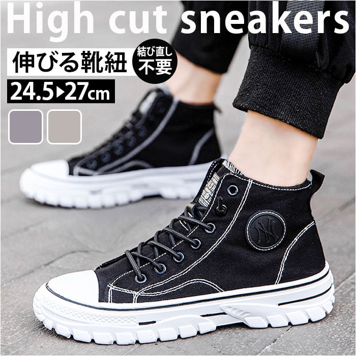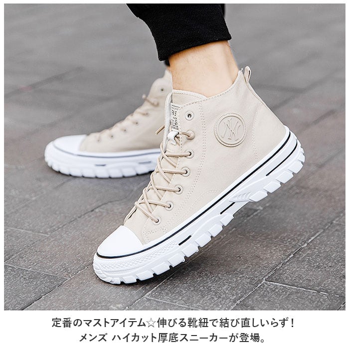 ・定番のマストアイテム☆伸びる靴紐で結び直しいらず!メンズ ハイカット厚底スニーカーが登場。