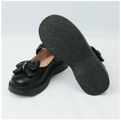 ・シンプルな無地のレザー調生地に大きなリボンをプラス。程よい光沢感と大きなリボンがどこか大人っぽく感じるクラシカルデザイン。