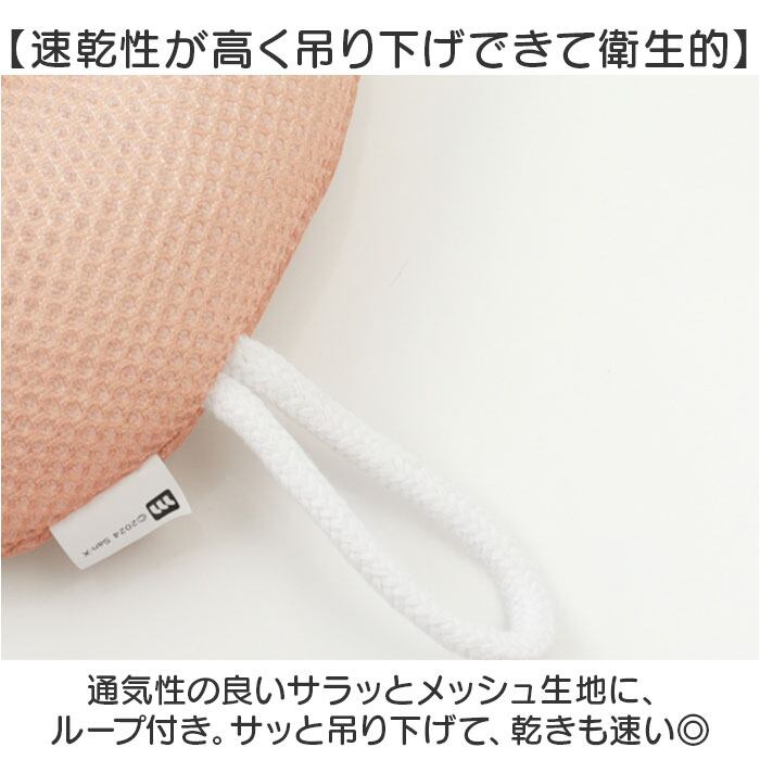 ・通気性の良いサラッとメッシュ生地に、ループ付き。サッと吊り下げて、乾きも速い◎