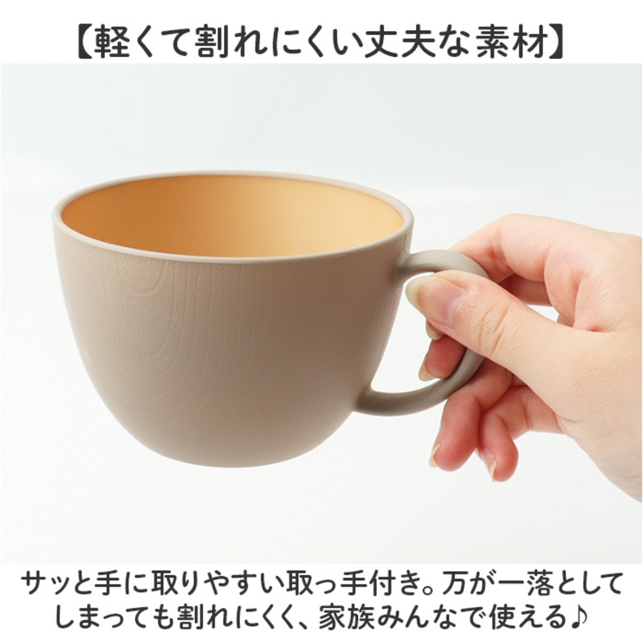 ・サッと手に取りやすい取っ手付き。万が一落としてしまっても割れにくく、家族みんなで使える♪