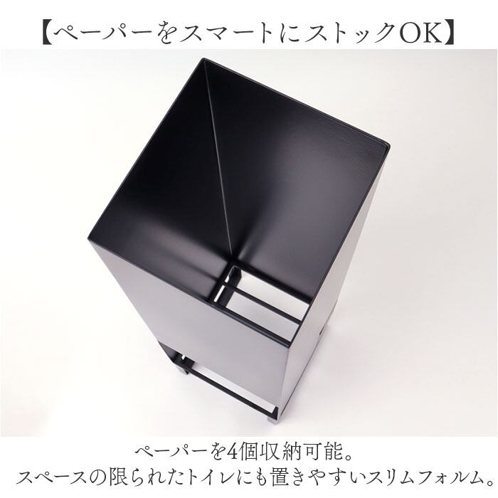 ・ペーパーを4個収納可能。スペースの限られたトイレにも置きやすいスリムフォルム。