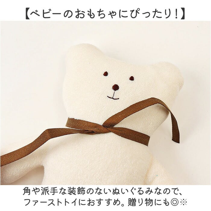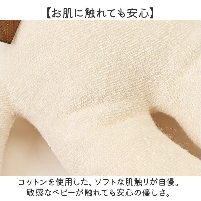 ・コットンを使用した、ソフトな肌触りが自慢。敏感なベビーが触れても安心の優しさ。