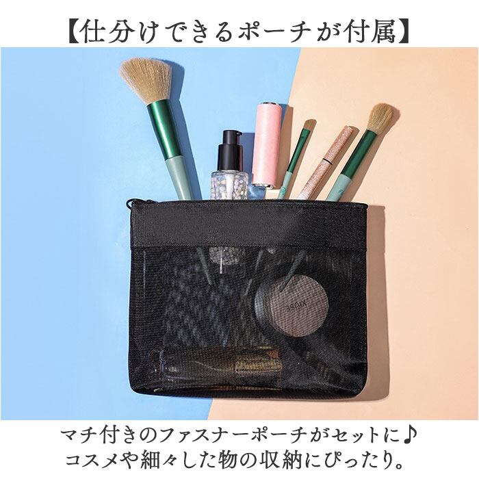 ・ちょこっと濡れても、サッと拭き取れて乾きも速い◎「メッシュスパバッグ ポーチセット」。