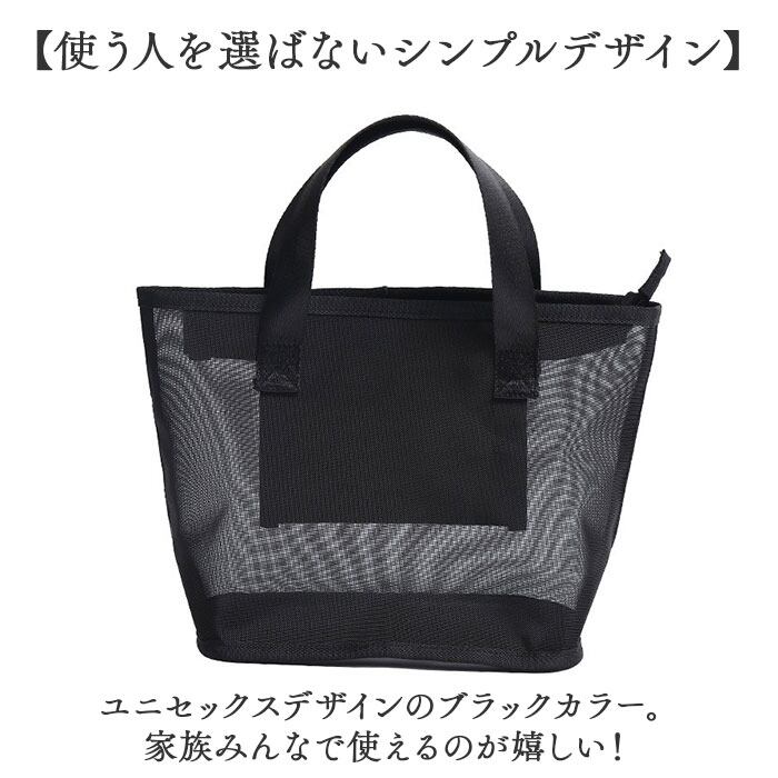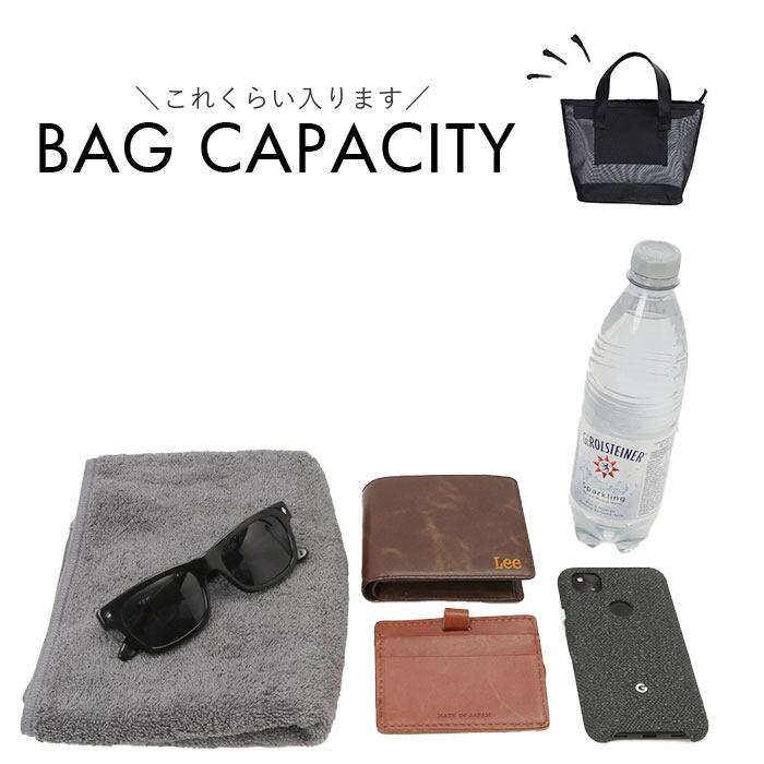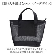 ・密度の高いメッシュ仕上げ。通気性に優れた素材&何を入れたか確認しやすいのがポイント。