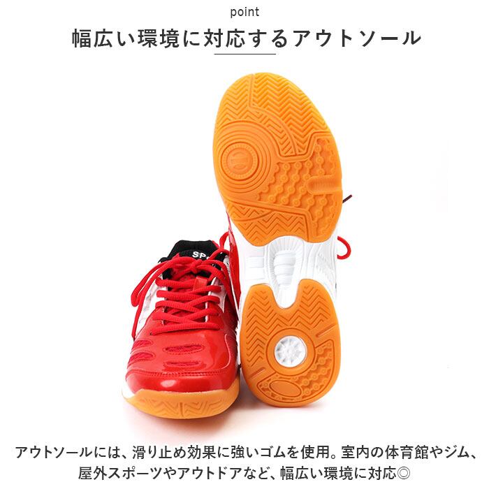 ・アウトソールには、滑り止め効果に強いゴムを使用。室内の体育館やジム、屋外スポーツやアウトドアなど、幅広い環境に対応◎