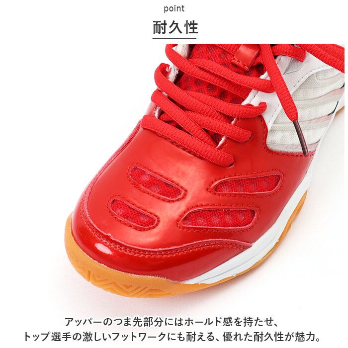 ・アッパーのつま先部分にはホールド感を持たせ、トップ選手の激しいフットワークにも耐える、優れた耐久性が魅力。