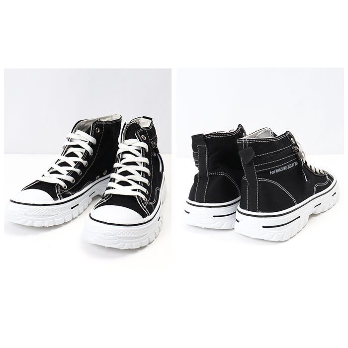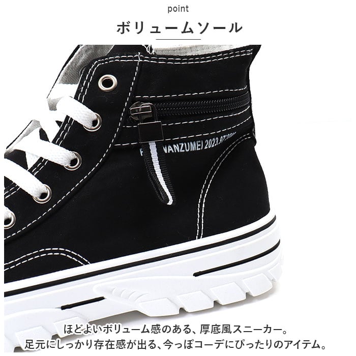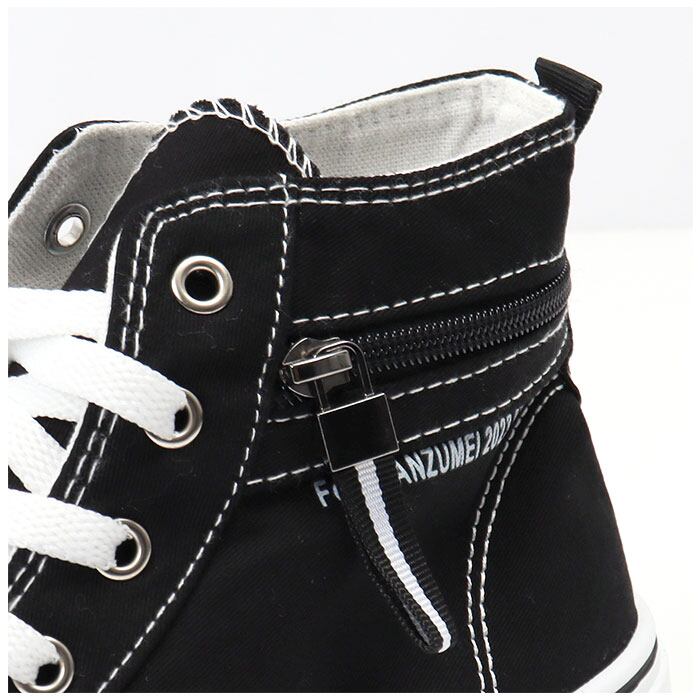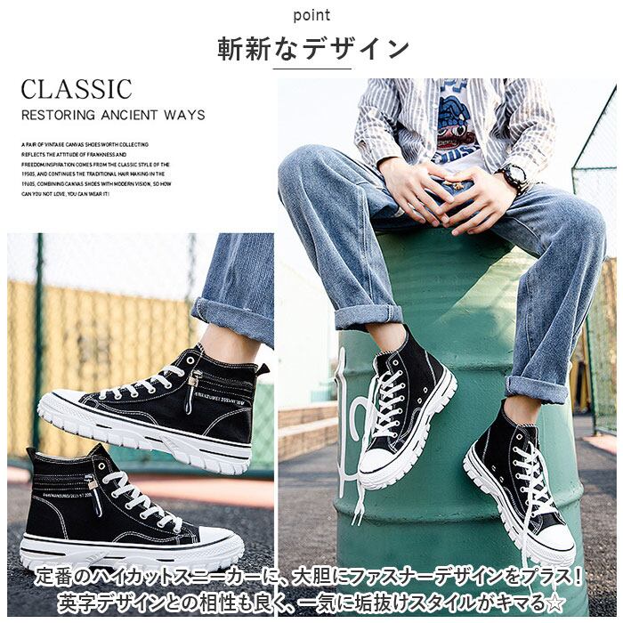 ・定番のハイカットスニーカーに、大胆にファスナーデザインをプラス!英字デザインとの相性も良く、一気に垢抜けスタイルがキマる☆