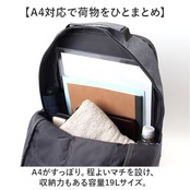 ・A4がすっぽり。程よいマチを設け、収納力もある容量19Lサイズ。