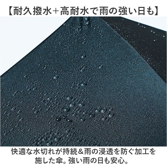 ・快適な水切れが持続&雨の浸透を防ぐ加工を施した傘。強い雨の日も安心。