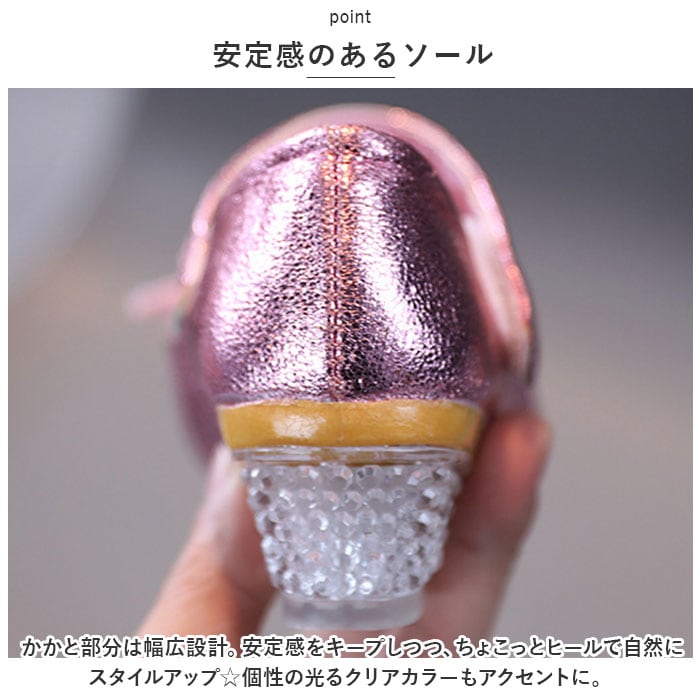 ・かかと部分は幅広設計。安定感をキープしつつ、ちょこっとヒールで自然にスタイルアップ☆個性の光るクリアカラーもアクセントに。