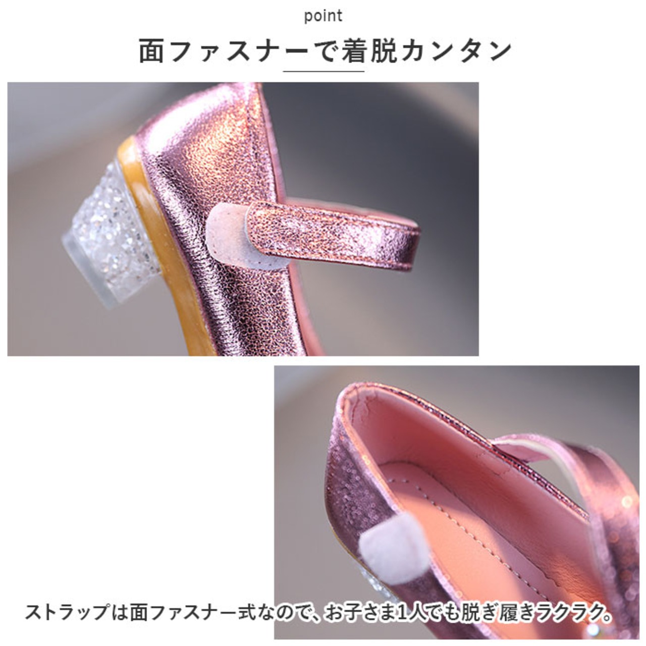 ・ストラップは面ファスナー式なので、お子さま1人でも脱ぎ履きラクラク。