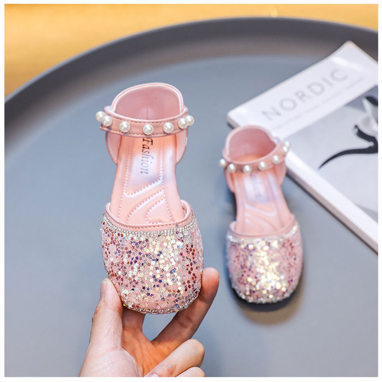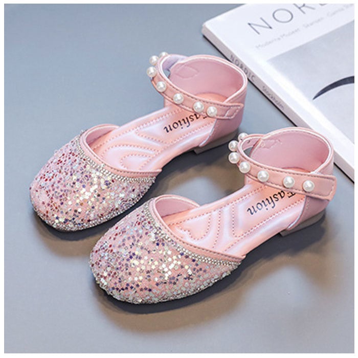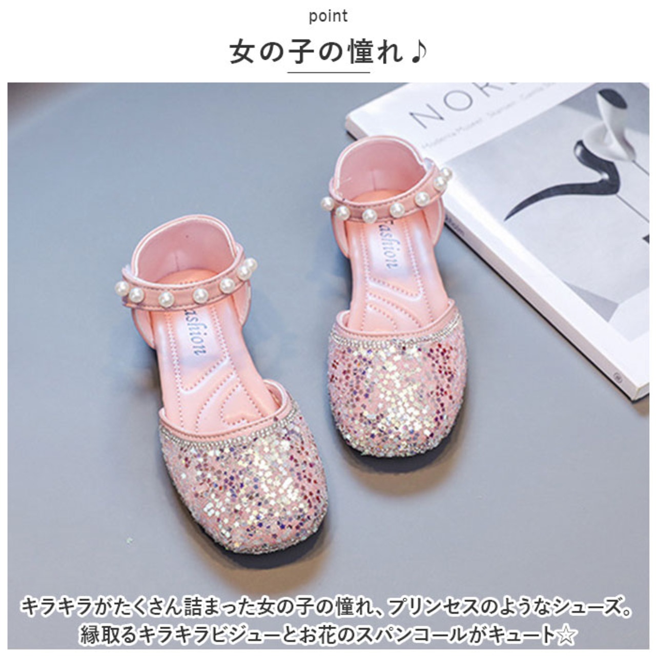 ・キラキラがたくさん詰まった女の子の憧れ、プリンセスのようなシューズ。縁取るキラキラビジューとお花のスパンコールがキュート☆