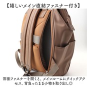 ・背面ファスナーを開くと、メインルームにクイックアクセス。背負ったまま小物を取り出し◎