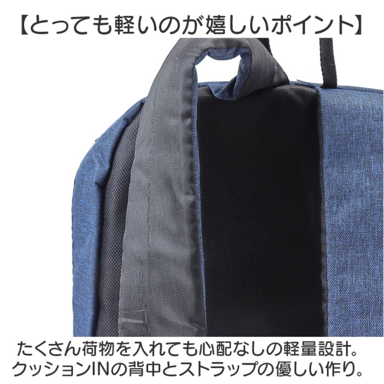 ・たくさん荷物を入れても心配なしの軽量設計。クッションINの背中とストラップの優しい作り。