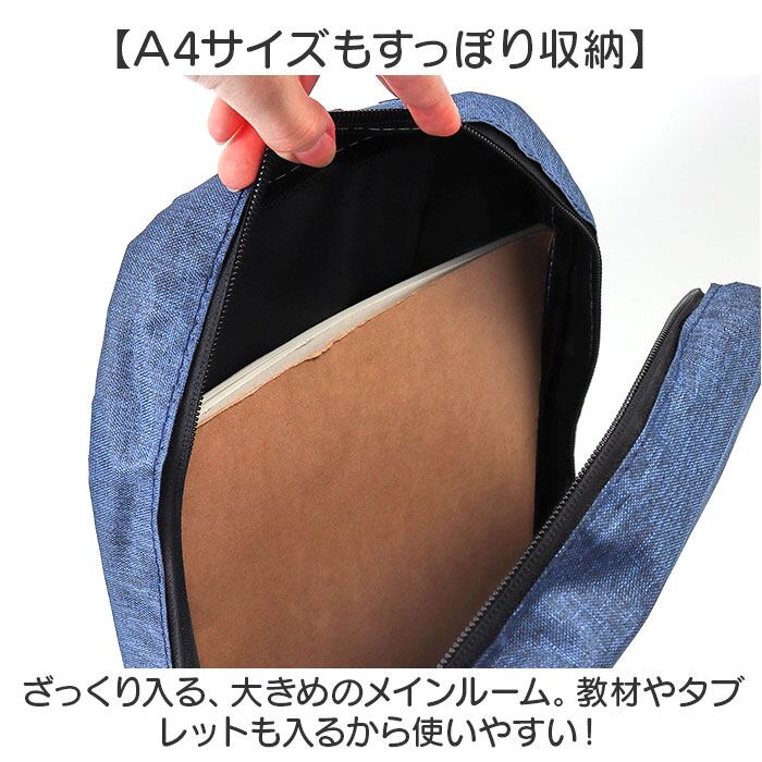 ・ざっくり入る、大きめのメインルーム。教材やタブレットも入るから使いやすい!