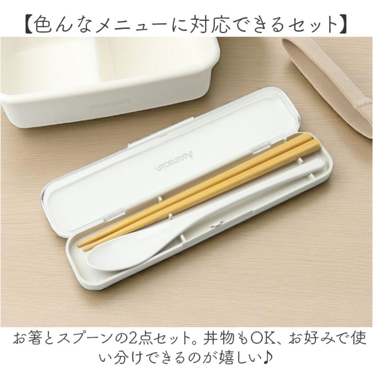 ・お箸とスプーンの2点セット。丼物もOK、お好みで使い分けできるのが嬉しい♪