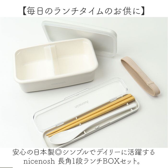 ・安心の日本製◎シンプルでデイリーに活躍するnicenosh 長角1段ランチBOXセット。