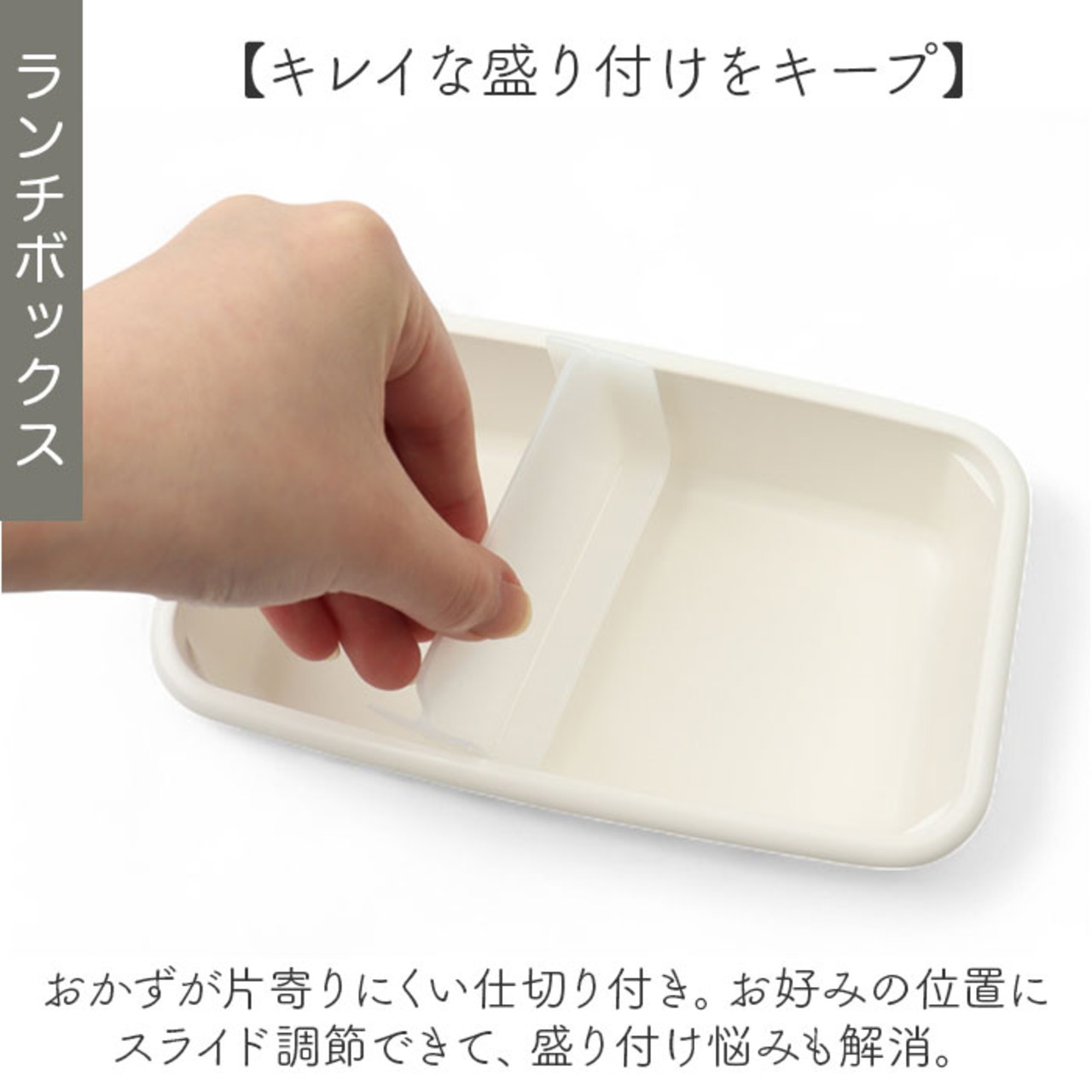 ・おかずが片寄りにくい仕切り付き。お好みの位置にスライド調節できて、盛り付け悩みも解消。