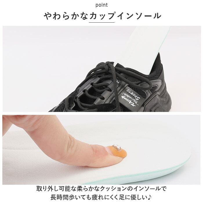 ・取り外し可能な柔らかなクッションのインソールで、長時間歩いても疲れにくく足に優しい♪