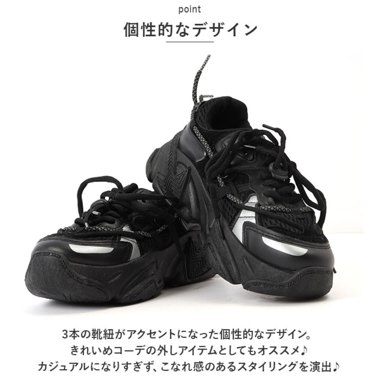 3本の靴紐が特徴のおしゃれな厚底スニーカーが登場!