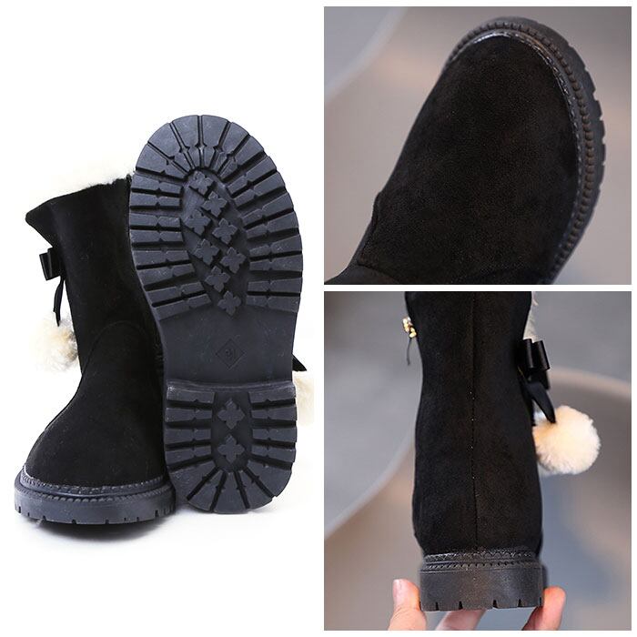 ・ボディはスエード調のしっとりとした質感。サイドのリボン&ボンボンで可愛さアップ☆