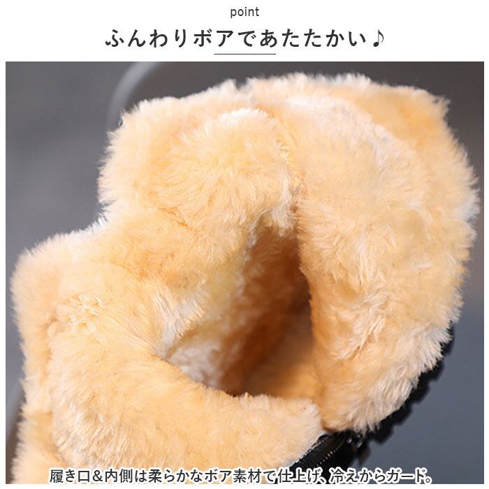 ・履き口&内側は柔らかなボア素材で仕上げ、冷えからガード。