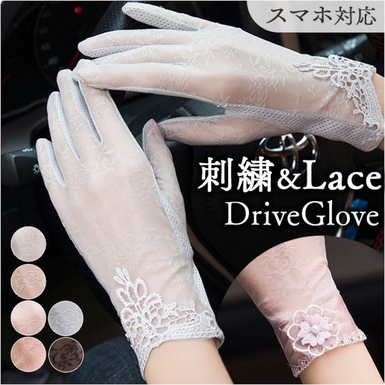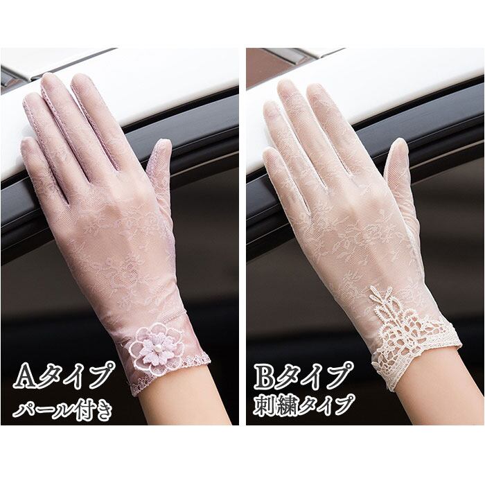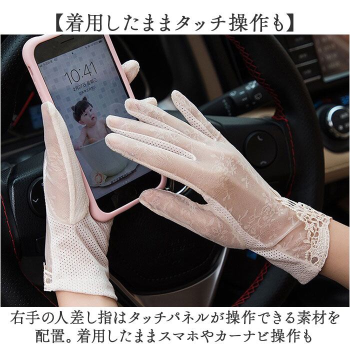 ドライブ用 ショート手袋 タッチパネル対応 レディース レース