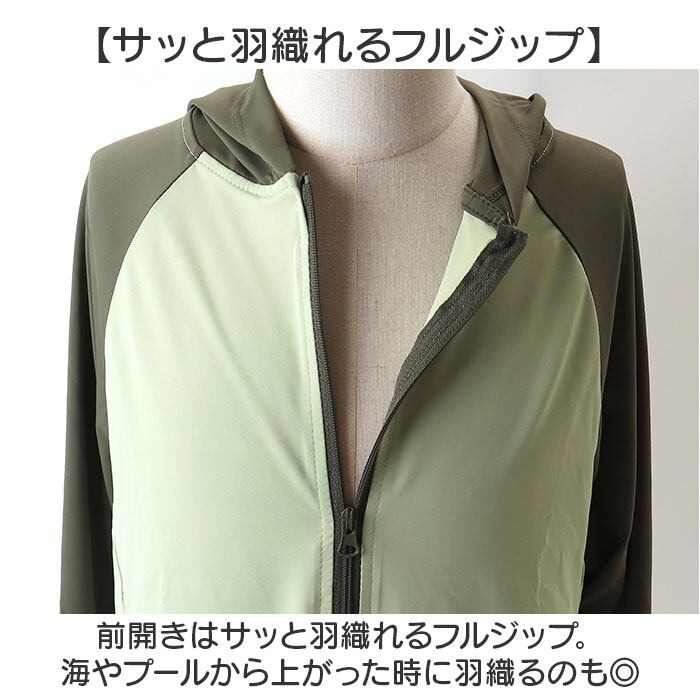 ・前開きはサッと羽織れるフルジップ。海やプールから上がった時に羽織るのも◎