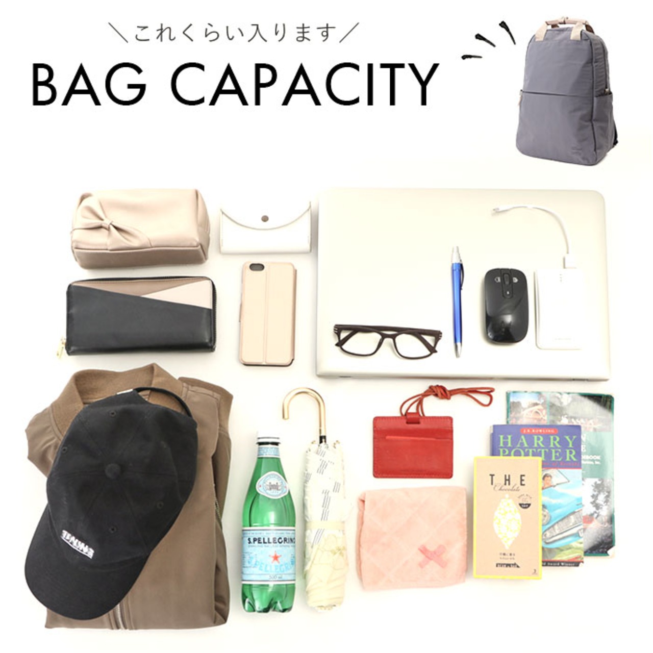 ・A4対応、15.4インチまでのPC対応ポケット付。通勤・通学にもおすすめの容量約21L。