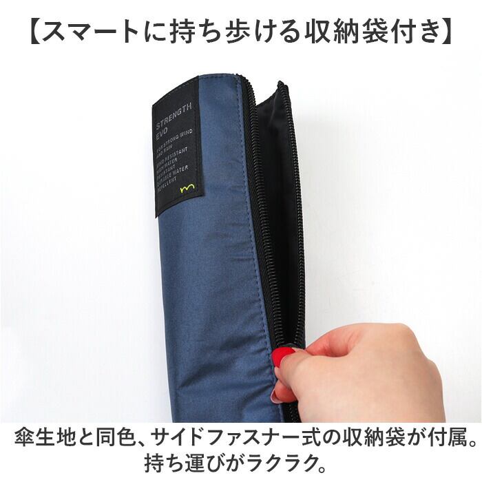 ・傘生地と同色、サイドファスナー式の収納袋が付属。持ち運びがラクラク。