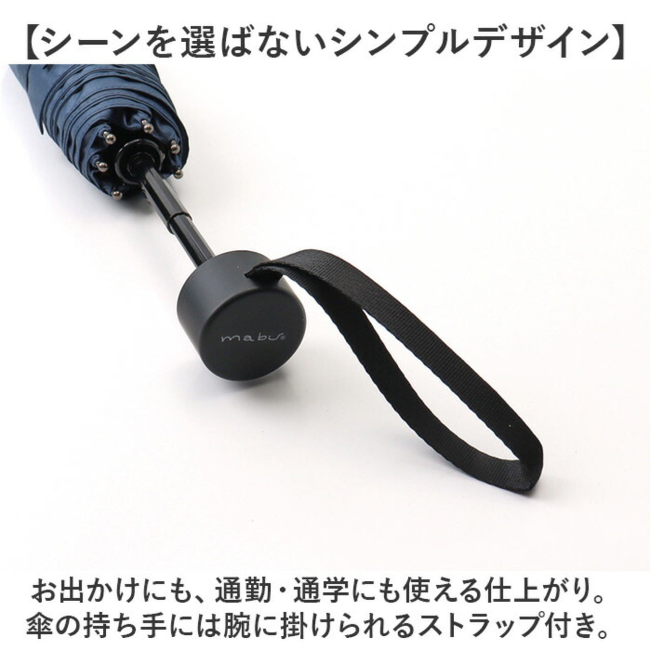 ・お出かけにも、通勤・通学にも使える仕上がり。傘の持ち手には腕に掛けられるストラップ付き。