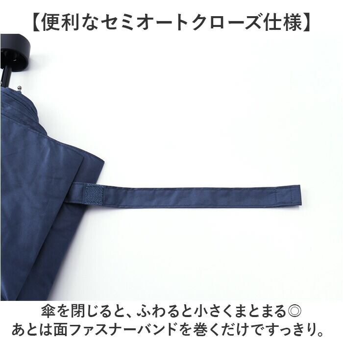 ・傘を閉じると、ふわると小さくまとまる◎あとは面ファスナーバンドを巻くだけですっきり。