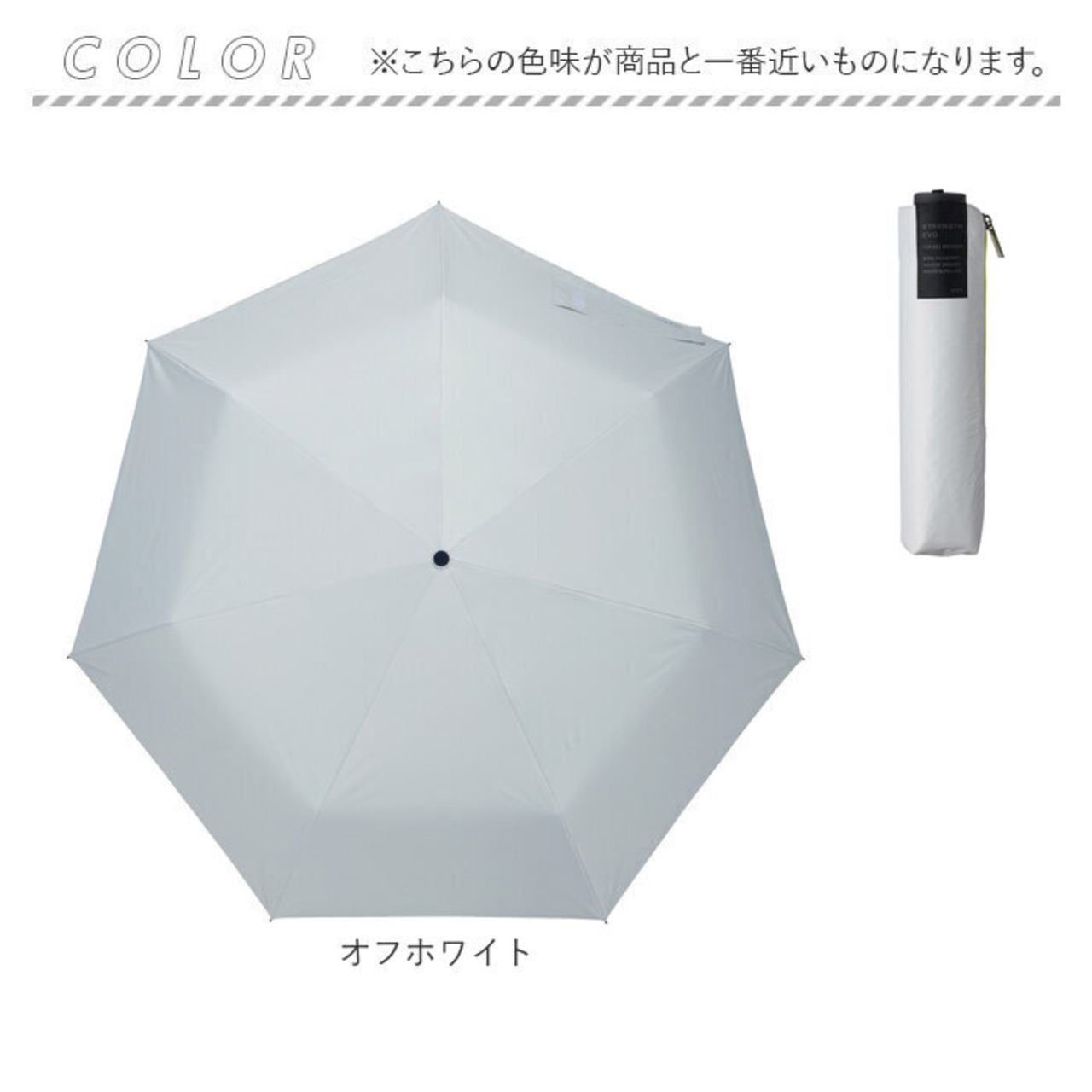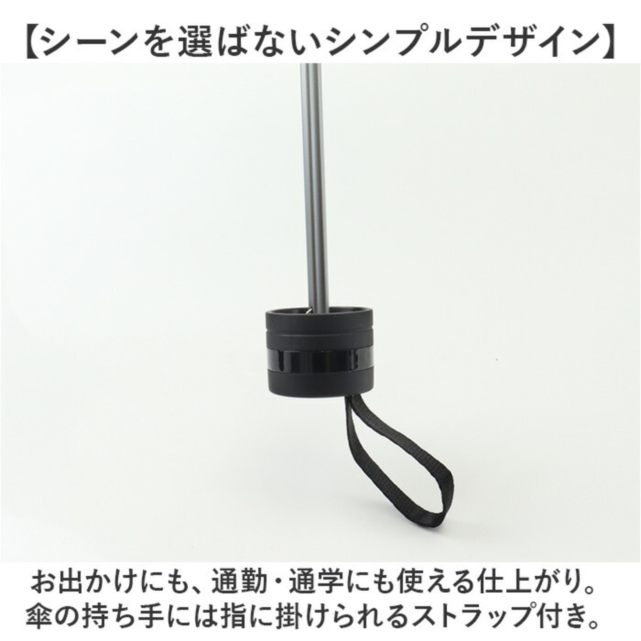 ・お出かけにも、通勤・通学にも使える仕上がり。傘の持ち手には指に掛けられるストラップ付き。