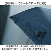 ・傘を閉じると、ふわると小さくまとまる◎あとは面ファスナーバンドを巻くだけですっきり。