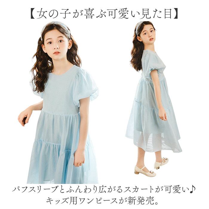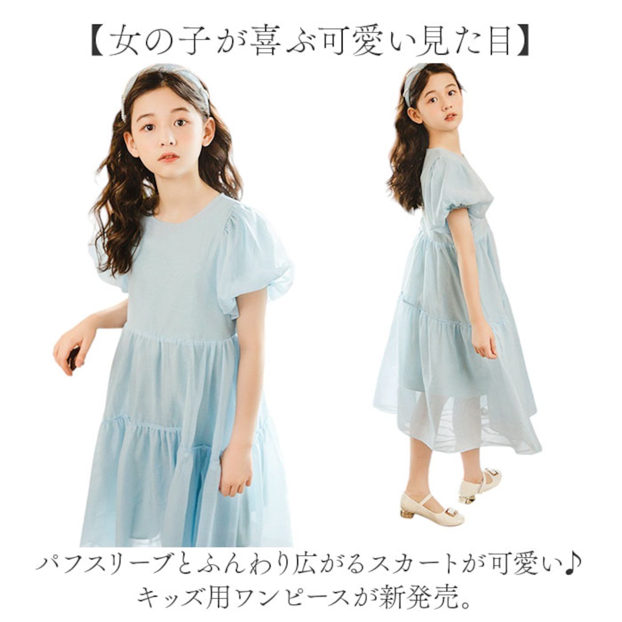 ・パフスリーブとふんわり広がるスカートが可愛い♪キッズ用ワンピースが新発売。