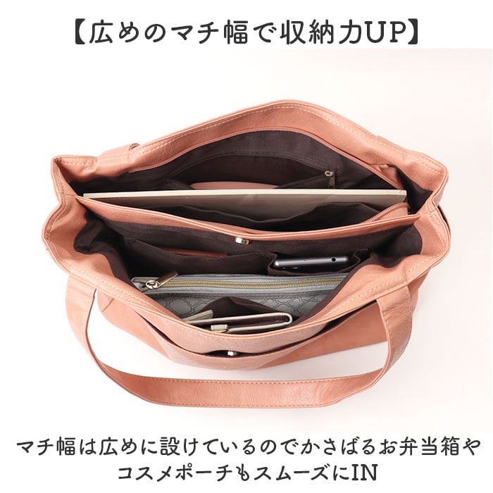 ・マチ幅は広めに設けているのでかさばるお弁当箱やコスメポーチもスムーズにIN