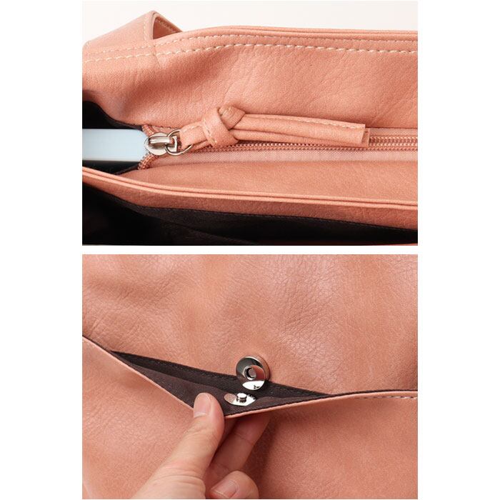 ・ワンカラーのレザー調にホワイトステッチが入っており、誰でも使いやすい仕上がり。