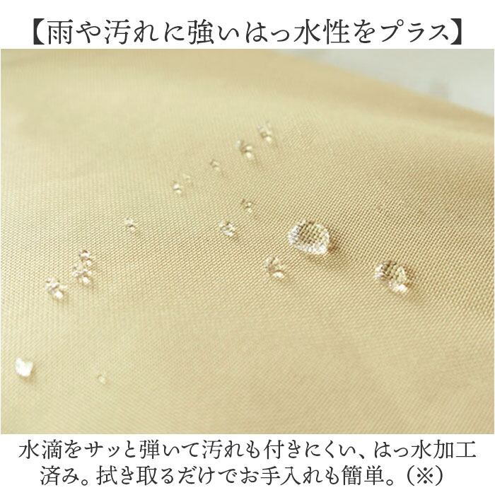 ・水滴をサッと弾いて汚れも付きにくい、はっ水加工済み。拭き取るだけでお手入れも簡単。