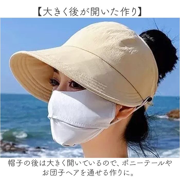 ・帽子の後は大きく開いているので、ポニーテールやお団子ヘアを通せる作りに。